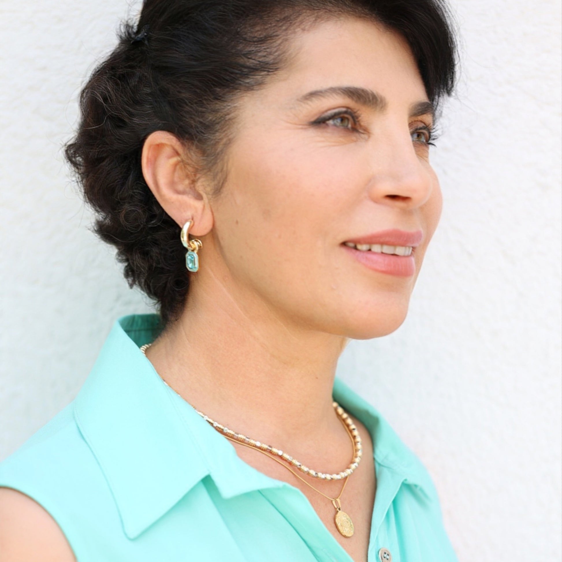 A touch of ocean depth captured in jewelry – the Azure Drop Earrings bring serenity and boldness together. The octahedron-cut blue zircon stone sways gently from a polished gold hoop, its facets reflecting shades of calm sky and deep sea. Perfect for those who want their jewelry to carry both strength and tranquillity.