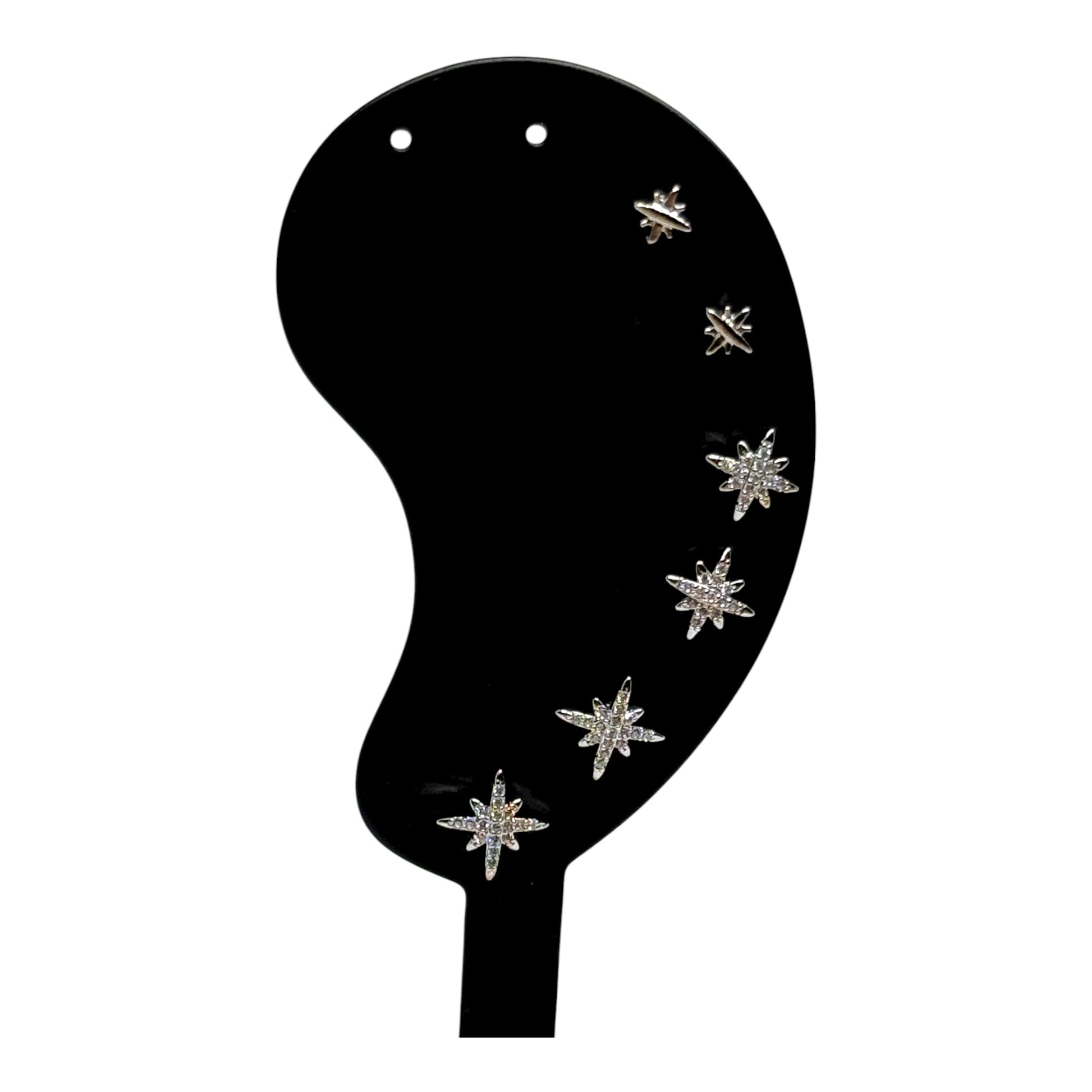 Like a constellation captured in jewelry form, the Eterna Earring Set brings the night sky closer to you. Each star-shaped stud is delicately embellished with shimmering pavé zircons, catching the light with every movement. Whether worn individually for a subtle sparkle or together for a bolder statement, this set embodies elegance with a modern cosmic charm.