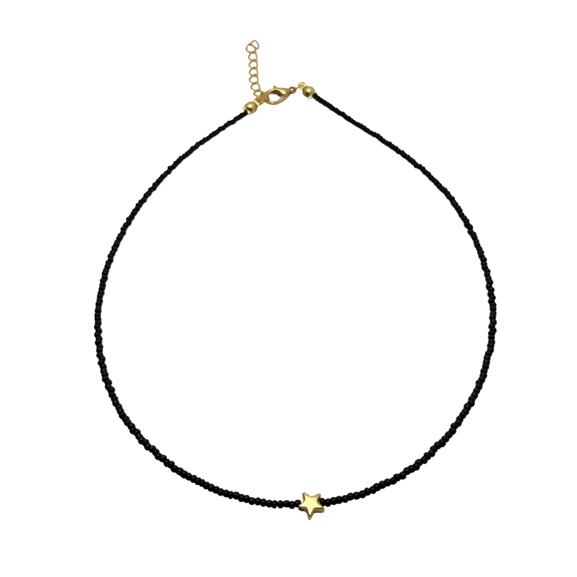 Minimalist and versatile, the Dot Necklace brings a subtle touch of elegance to everyday style. Hand-strung with black seed beads and accented with a polished gold-tone centerpiece, it’s designed to complement both casual and elevated looks. Choose between two timeless variations: Heart for a romantic feel or Star for a playful, celestial touch.