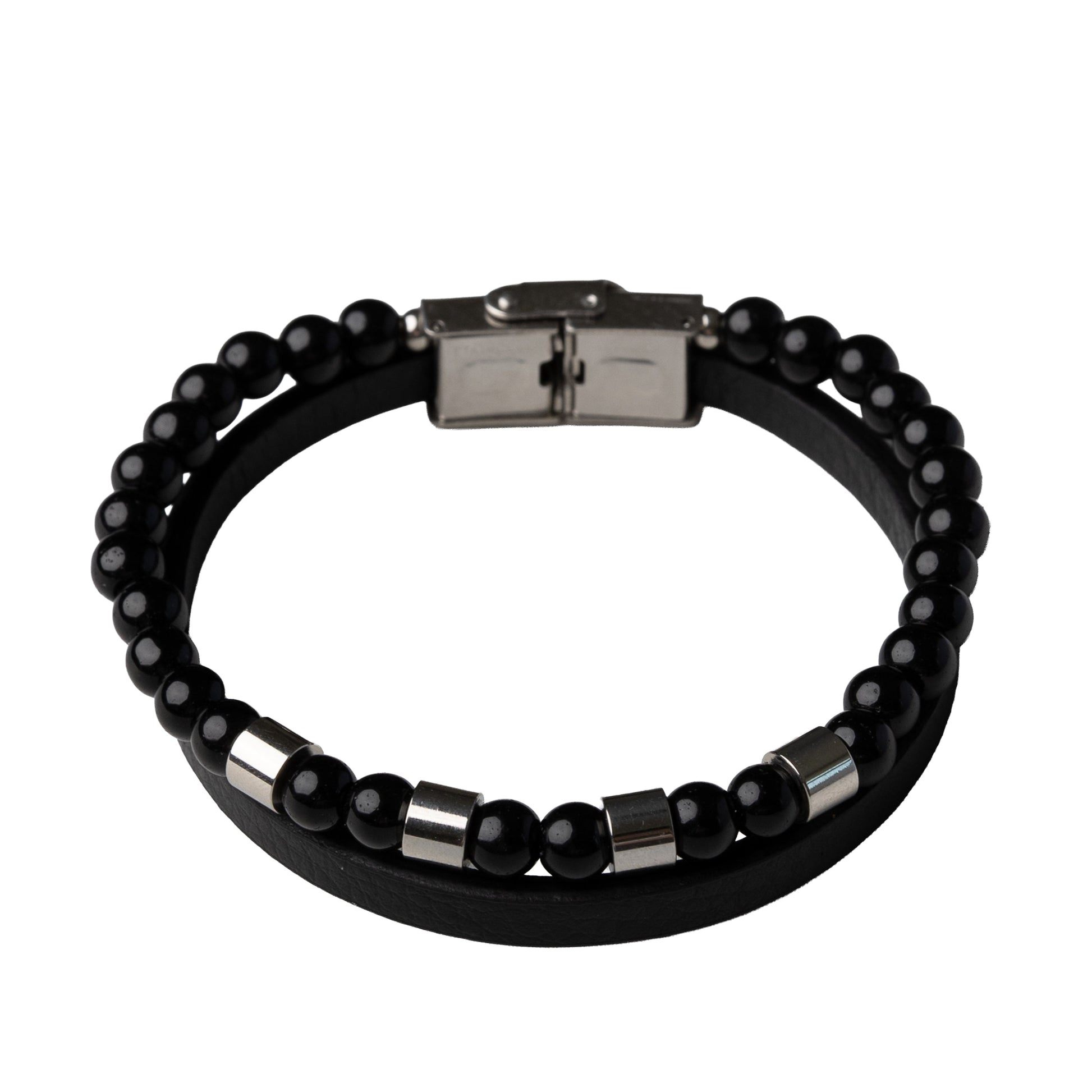 Crafted for the modern man who values strength and style, the Onyx Steel Duo Bracelet balances rugged elegance with refined detail. The contrast of polished steel and deep onyx tones evokes confidence, while the sleek black strap adds a contemporary edge — making it perfect for everyday wear or special occasions.
