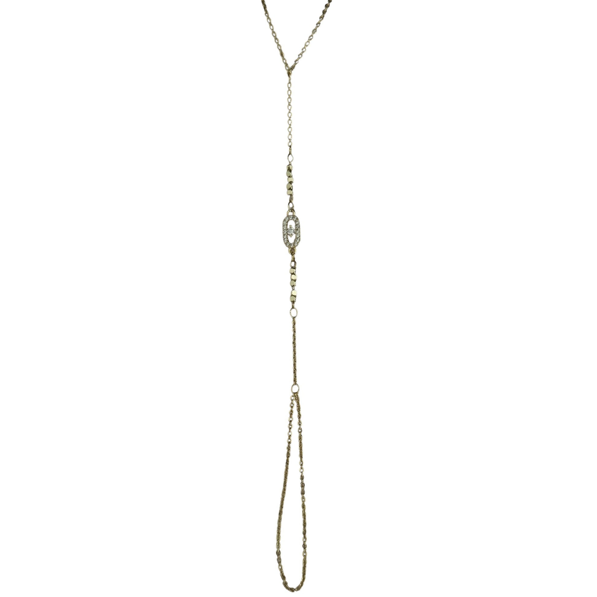 Graceful and radiant, the Rayna Hand Chain Bracelet is designed to flow elegantly across the wrist and hand, creating a jewelry piece that feels both timeless and captivating. Crafted from a lightweight metal alloy with a gold-tone plating, it is adorned with sparkling crystal embellishments that catch the light beautifully. Perfect for special occasions or to elevate everyday looks, Rayna embodies refined femininity with a hint of glamour.