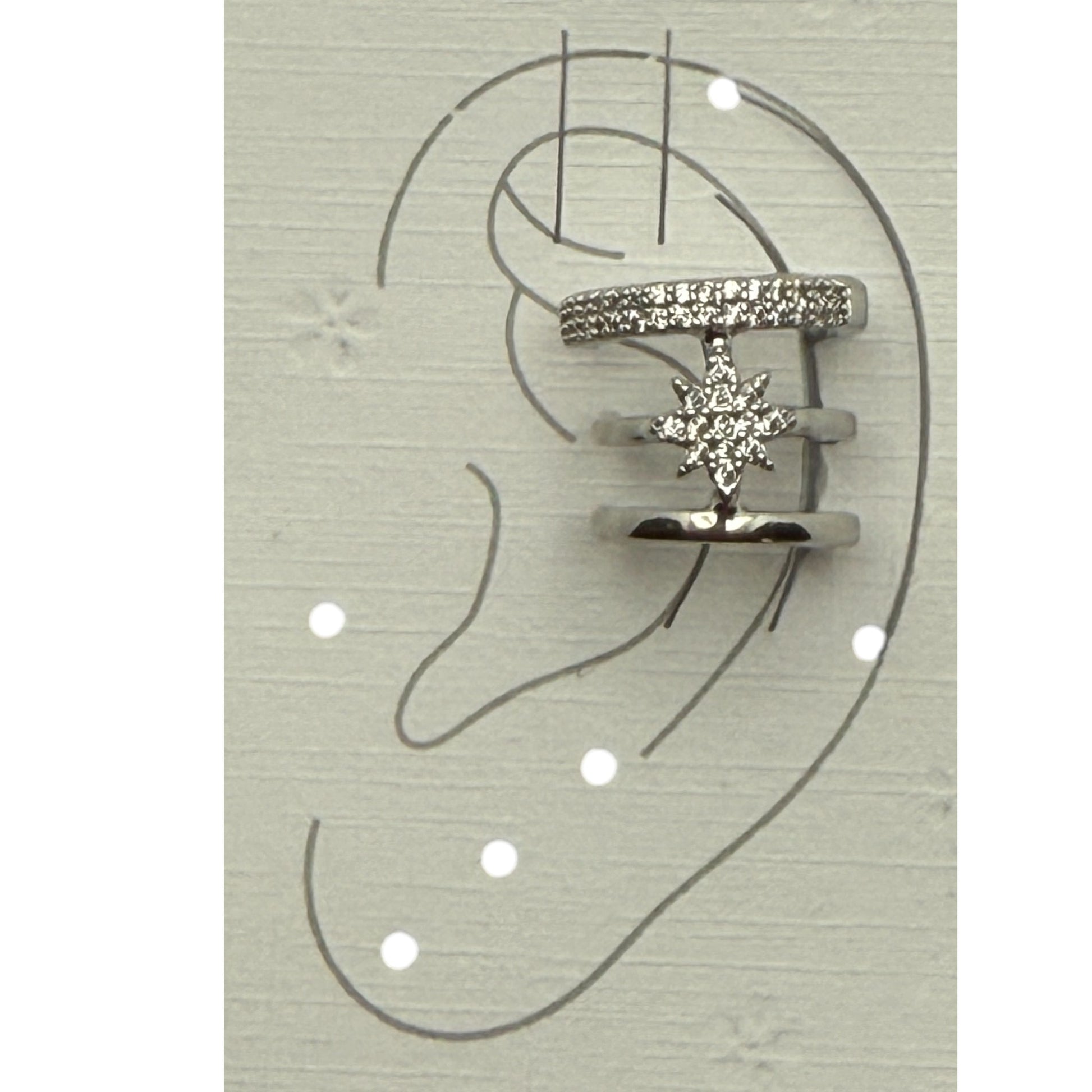 Shine like the stars with the Stellar Cuff Earring. Designed to wrap gently around the ear, this cuff captures the brilliance of constellations with its micro zircon stones. Made from rhodium-plated brass, it offers a sleek silver tone that’s both modern and versatile. Perfect for stacking with other earrings or wearing solo as a refined statement, all without the need for an ear piercing.